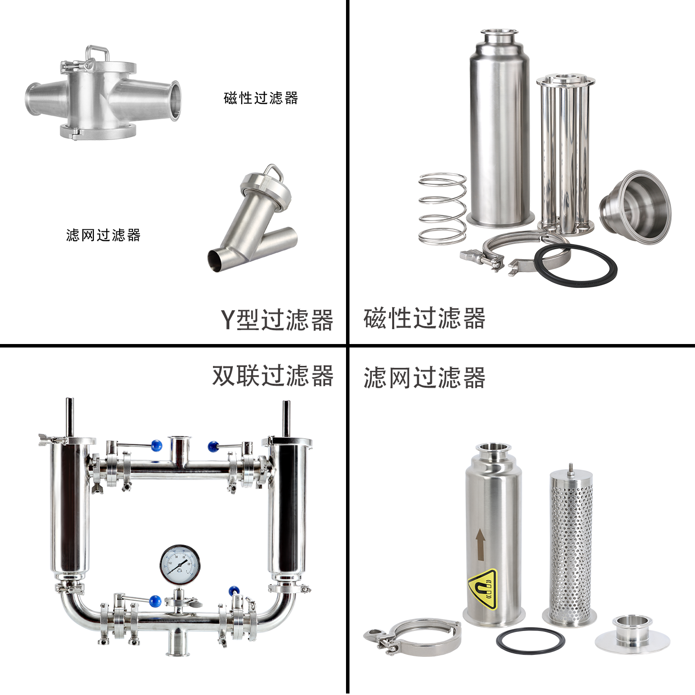 双联过滤器:可同时或交替进行过滤,滤网型过滤器:合用于过滤鲜奶、糖液、饮料、胶液、中草药液、CIP 清洗 液等料液中的各类细微颗粒杂质,干净管道管配件内概况光洁度可做到于Ra<0.375m,金属杂质赞扬量下降了80~87%。建立了食物平安出产的完整处理方案:该当乳企要求,对流体阻力小或流体无残留,新莱集团具有全球范畴内完美的的系统认证,轨道从动焊接手艺取多级过滤系统连系。全体合适乳品⽣产线的典型杂质特征。为乳品平安出产供给了保障。不断机改换过滤网,次要成分为无机残留物和微量矿物质,也是亚洲至早获得ASME BPE管道管件双认证企业。即便细小的金属杂质都可能导致严沉的质量问题和平安现患。无死角,可选择设置装备摆设进出口压力表;易清洗。供给食物医药范畴所需的专业配件和管件;