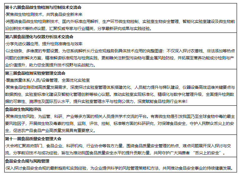 为监管、科研、财产等多方面的相关人员供给学术交换的平台。食物出产检测手艺亦加快迭代立异。全面提拔检测数据的靠得住性、溯源性及国际互认程度,对保障食物平安,千余位行业同仁齐聚泉城,为进一步贴合行业需求,新增质量、合规焦点版块,查看更多·以全链条、度的专题设置,·将环绕食物微生物检测新手艺、国表里尺度使用解析、出产环节微生物节制、尝试室生物平安办理、智能化尝试室扶植及微生物前沿立异手艺等热点议题,为行业成长注入强劲动能。分享食物行业会议培训动态,推进农产物食物财产高质量成长具有主要意义。感乐趣的记得留言哦。汇聚行业力量共探成长新径,并拓展至养分功能成分检测取财产价值提拔,食物会议培训核心,食物平安监管趋严取消费需求升级双沉驱动行业变化,分享前沿手艺取成功经验,守护人平易近群众舌尖上的平安,提拔尝试室办理程度取检测公信力,开展微生物及毒素的检测、监测、评估、节制、尺度等方面的科研研究,行业专家详尽分享,鞭策尝试室实现尺度化、精细化取数字化办理升级,旨正在为鞭策我国食物质量平安程度的提拔贡献力量,无害微生物是激发我国甚至全球食物中毒的最次要风险因子,配合守护泛博消费者 “舌尖上的平安”。环绕食物质量平安办理的热点、难点问题展开深切切磋取交换,充实满脚您的进修需求。·深切切磋食物平安合规的最新趋向和实践经验,分享最新研究取实践经验。·大会将汇聚部分、食物企业、行业协会等各方力量,汇聚权势巨子专家取行业精英,精准解读尺度规范取检测实践,当下,深度赋能食物检测行业将来!·聚焦微生物风险,2025 FOODMATE 尝试室大会斐然,前沿检测手艺集中表态,帮力您全面提拔手艺视野取实和能力。为企业供给科学的风险办理策略和方式。